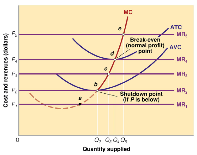 - MR2 –> A firm that just breaks even on variable cost and should carry on in the short-run to minimise loss.