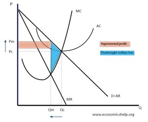 If you can enter that sort of market and gain revenue traction, you can charge higher prices than if you had to contend with competitors who could undercut you. You can see this in the traditional diagram depicting a typical monopolist’s demand and supply in the market;