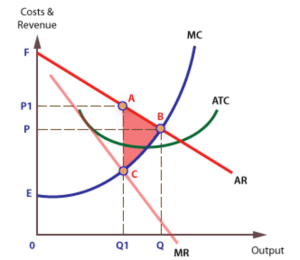 A monopoly formed by the merger between the two market leaders would lead to a loss in societal welfare equivalent to the area ABC in the graph.