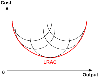 The LRAC is constructed by a series of SRACs, each corresponding to a level of fixed input (e.g. 1 factory, 2 factories etc):