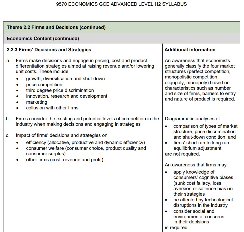 Perhaps we can interpret this to be SEAB’s nod towards the continually increasing interest in behavioural processes influencing choices and allocations in Economics, but yet recognising that a fuller discourse in the mechanism and nuances of cognitive bias might be excessive for the syllabus.